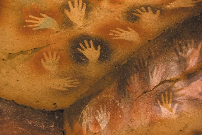 Pero sin dudas, lo que más llama la atención son las pinturas de negativos de las manos, una de las características más destacadas de su arte. En su mayoría se trata de negativos de manos izquierdas de ambos sexos, y las hay de adultos, jóvenes y también de niños pequeños.